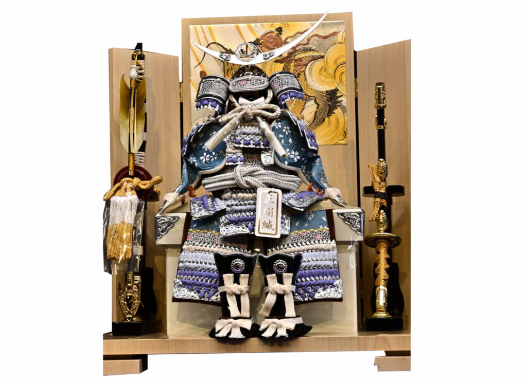 古来鎧・兜には邪気を祓う力があるといわれ、男の子の初節句には武具を飾り無事な成長を祈ります。