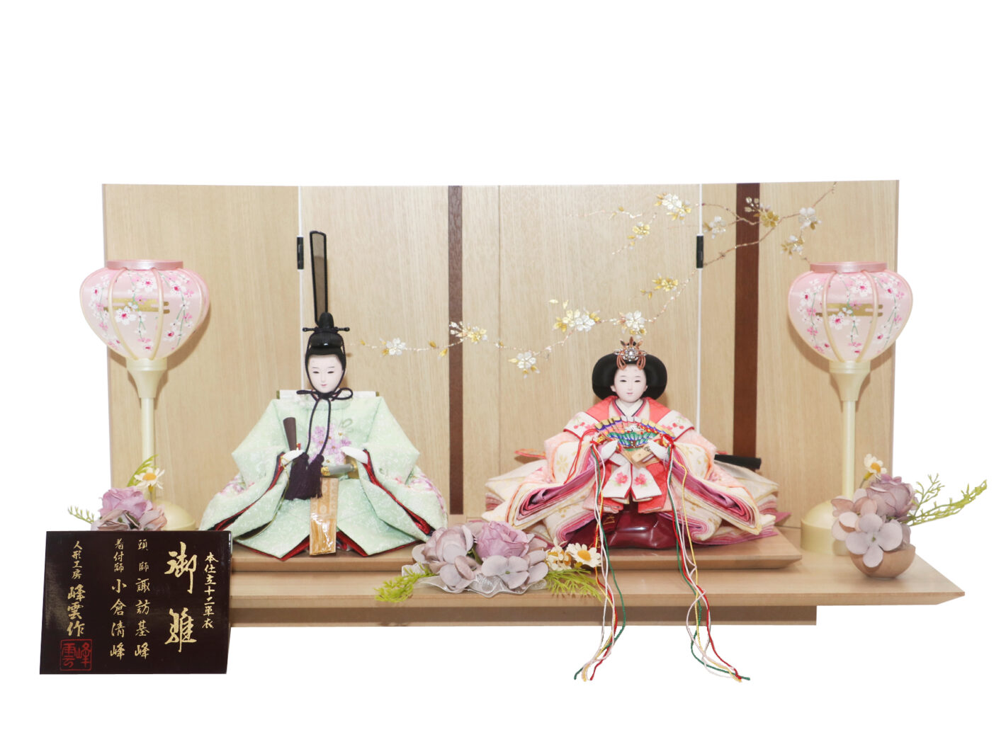 リボン桜刺繍が金彩屏風に映えるセットです。